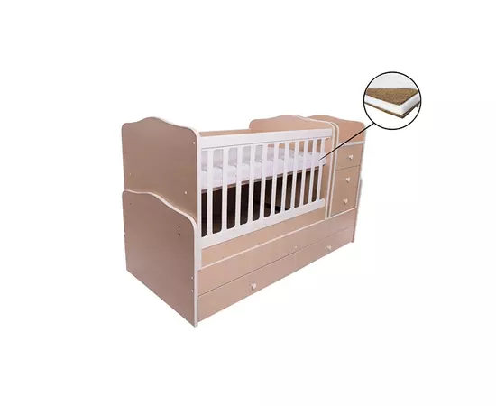 Comoda patutului poate fi folosita ca si suport pentru schimbat scutece si este detasabila.