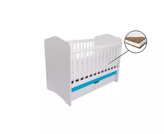 Patut Eurogloria Como cu sertar - Alb cu Albastru + Saltea Cocos 10 cm