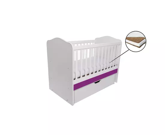 Patut Eurogloria Como Balansoar - Alb cu Violet + Saltea Cocos 10 cm