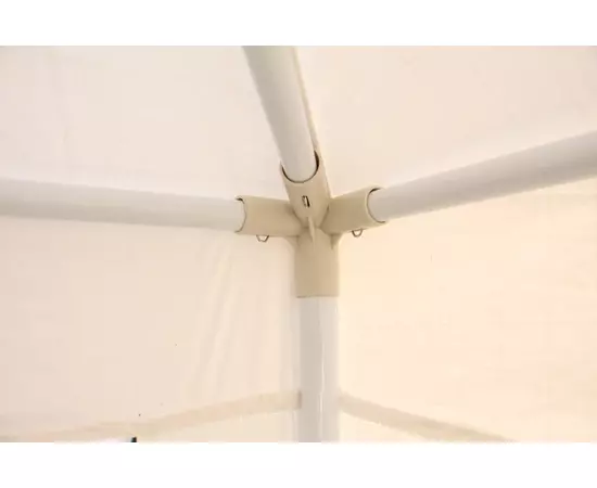 Acoperisul pavilionului este confectionat din polietilena de 100 g/m2 de culoare alba, care ofera un grad mare de protectie impotriva soarelui.