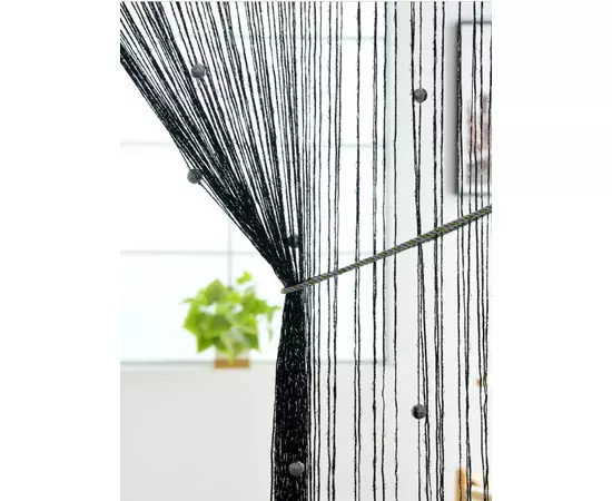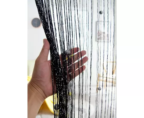 Această perdea cu franjuri negri poate fi folosită pentru a crea un contrast puternic într-un decor luminos sau pentru a completa un interior în stil modern. Este potrivită pentru diferite încăperi, de la dormitor până la sufragerie sau birou. Cu designul său simplu și sofisticat, perdeaua adaugă un plus de stil și rafinament în orice spațiu.
