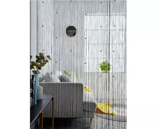 - Franjuri: Franjurii de pe această perdea adaugă un aspect decorativ suplimentar și o notă de mișcare atunci când perdeaua este atinsă de curentul de aer sau lumină. Aceștia oferă un aer jucăuș și plin de viață.