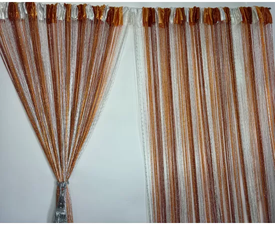 Perdea franjurata ( ate ) dimensiuni 3 x 3 metri se potriveste pentru toate sistemele cu sine, in partea superioara are un buzunar de 7 cm in care se poate introduce bara galeriei. Daca aveti sistem pe rejansa puteti sa ii adaugati rejansa. O puteti croi dupa bunul plac: pe latime, inaltime sau chiar si in forme curbate, firele nu se vor destrama. Se poate folosi si ca delimitator de spatiu sau ca perdea la usa. Totodata aceasta perdea protejeaza si contra insectelor.