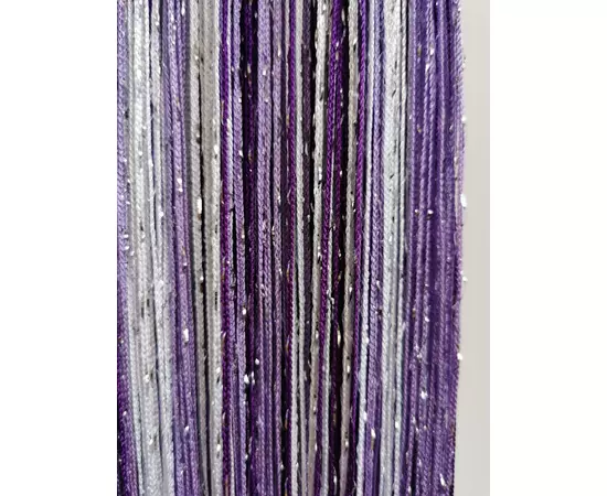 Perdea cu franjuri modernă cu insertii argintii. Poate fi agățată pe inele cu cleme sau întinsă pe galerie.