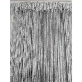 Perdea cu franjuri modernă cu insertii argintii. Poate fi agățată pe inele cu cleme sau întinsă pe galerie.