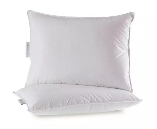 Această pernă cu umplutura din puf de gâscă are o grosime medie și suport si o duritate mica.