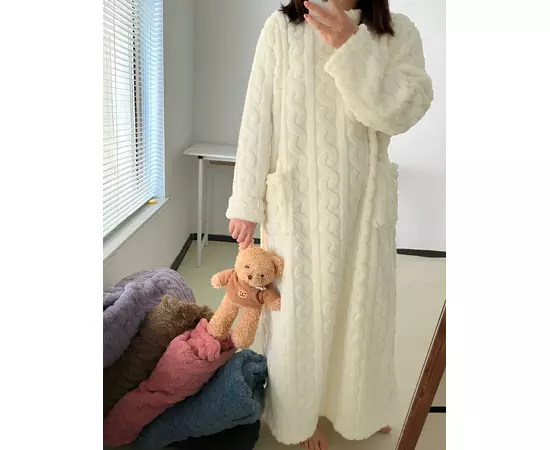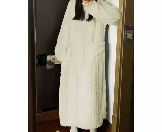 Aceasta pijama de casa tip rochie este perfecta pentru serile reci de iarna, oferind confortul si caldura de care ai nevoie. Fabricata din material cocolino moale si pufos, aceasta te invaluie intr-o senzatie de relaxare totala. Cu maneca lunga si un design elegant, iti va pastra intregul corp cald, fiind ideala pentru momentele de relaxare in confortul casei.