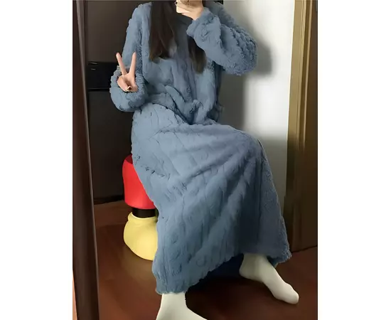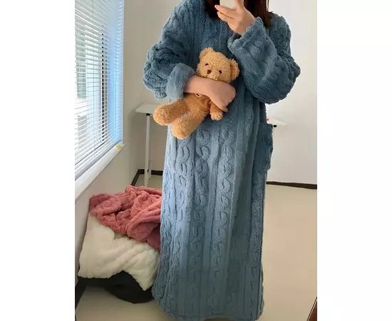 Aceasta pijama de casa tip rochie este perfecta pentru serile reci de iarna, oferind confortul si caldura de care ai nevoie. Fabricata din material cocolino moale si pufos, aceasta te invaluie intr-o senzatie de relaxare totala. Cu maneca lunga si un design elegant, iti va pastra intregul corp cald, fiind ideala pentru momentele de relaxare in confortul casei.