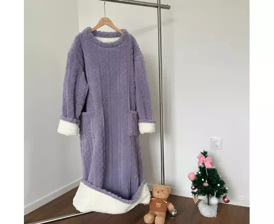 Aceasta pijama de casa tip rochie este perfecta pentru serile reci de iarna, oferind confortul si caldura de care ai nevoie. Fabricata din material cocolino moale si pufos, aceasta te invaluie intr-o senzatie de relaxare totala. Cu maneca lunga si un design elegant, iti va pastra intregul corp cald, fiind ideala pentru momentele de relaxare in confortul casei.