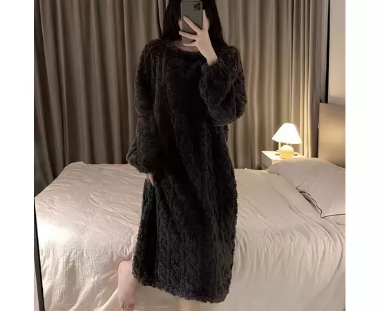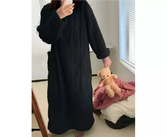 Aceasta pijama de casa tip rochie este perfecta pentru serile reci de iarna, oferind confortul si caldura de care ai nevoie. Fabricata din material cocolino moale si pufos, aceasta te invaluie intr-o senzatie de relaxare totala. Cu maneca lunga si un design elegant, iti va pastra intregul corp cald, fiind ideala pentru momentele de relaxare in confortul casei.