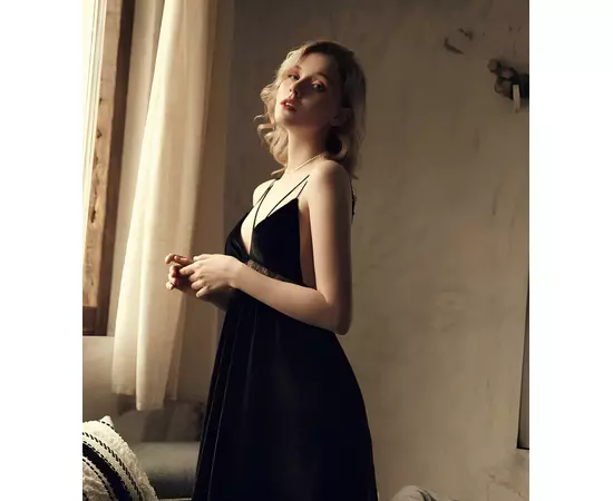 Pijama rochie de damă din catifea este o piesă de lenjerie cu un farmec deosebit, care îmbină luxul texturii de catifea cu confortul și feminitatea. Iată o descriere detaliată a acestei piese elegante:
