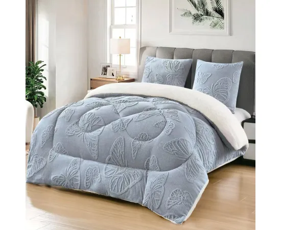 Alege eleganța și confortul absolut cu pilota cu blană 200x230 cm, model fluturi, însoțită de 2 fețe de pernă asortate. Realizată din materiale premium, combina exteriorul catifelat cu interiorul pufos din blăniță, oferind căldură și un somn odihnitor în nopțile reci. Designul cu fluturi adaugă un plus de stil și rafinament dormitorului tău.