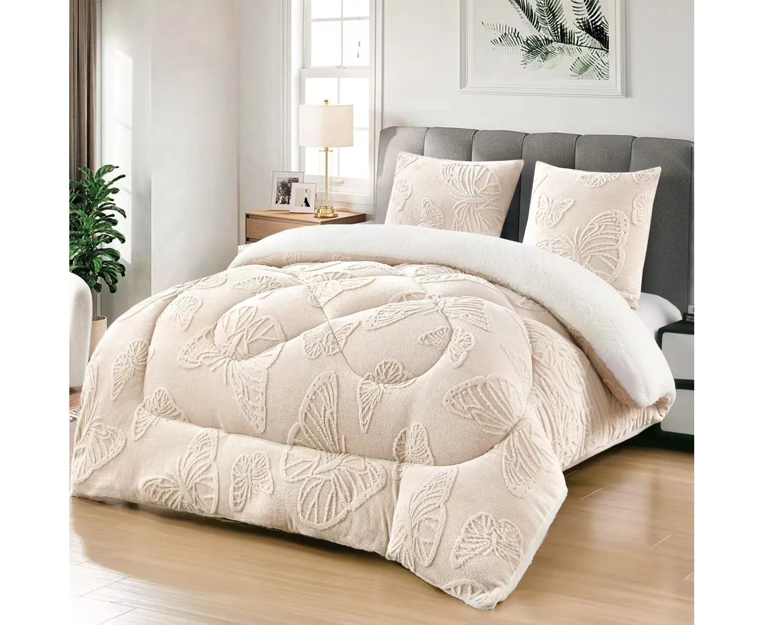 Alege eleganța și confortul absolut cu pilota cu blană 200x230 cm, model fluturi, însoțită de 2 fețe de pernă asortate. Realizată din materiale premium, combina exteriorul catifelat cu interiorul pufos din blăniță, oferind căldură și un somn odihnitor în nopțile reci. Designul cu fluturi adaugă un plus de stil și rafinament dormitorului tău.
