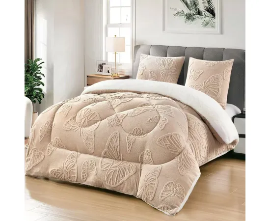 Alege eleganța și confortul absolut cu pilota cu blană 200x230 cm, model fluturi, însoțită de 2 fețe de pernă asortate. Realizată din materiale premium, combina exteriorul catifelat cu interiorul pufos din blăniță, oferind căldură și un somn odihnitor în nopțile reci. Designul cu fluturi adaugă un plus de stil și rafinament dormitorului tău.