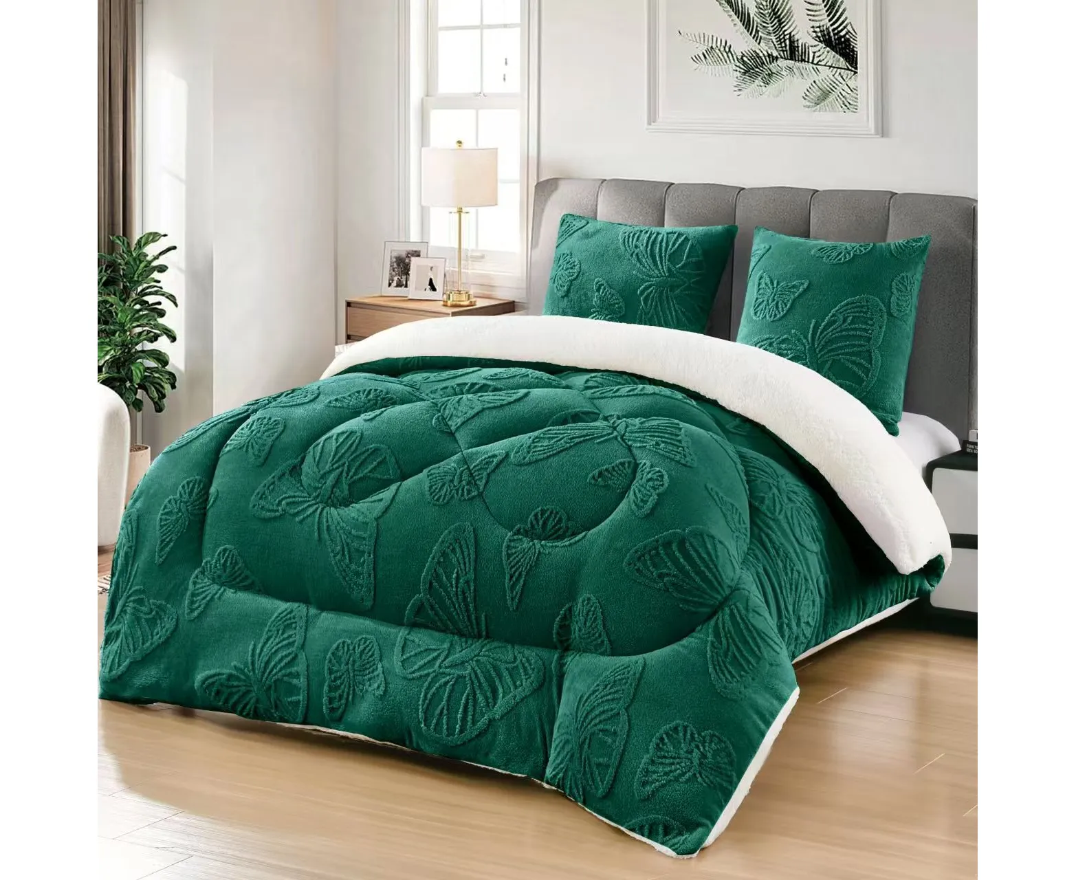 Alege eleganța și confortul absolut cu pilota cu blană 200x230 cm, model fluturi, însoțită de 2 fețe de pernă asortate. Realizată din materiale premium, combina exteriorul catifelat cu interiorul pufos din blăniță, oferind căldură și un somn odihnitor în nopțile reci. Designul cu fluturi adaugă un plus de stil și rafinament dormitorului tău.