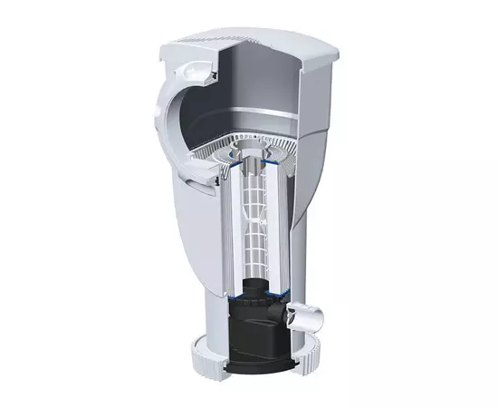 Piscina este echipată cu un sistem de filtrare de tip skimmer cu cartus care se montează direct pe peretele piscinei, în exterior, la nivelul liniei apei, asigurand o curățare superioară pompelor obișnuite și fără a te mai împiedica de furtunele întinse în jurul piscinei.