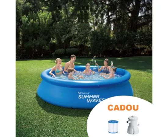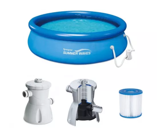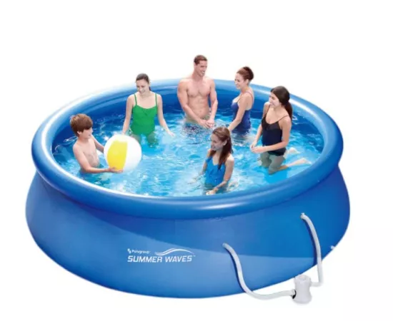 Piscina supraterană Summer Waves cu inel gonflabil și pompă de filtrare inclusă este concepută pentru o instalare rapidă în numai 10 minute! Te poți bucura de distracție imediată împreună cu familia ta în dimesiunile generoase ale piscinei: