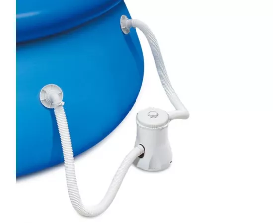 Piscina este echipată cu un sistem de filtrare cu cartus care se montează direct pe peretele piscinei, în exterior, la nivelul liniei apei, asigurand o curățare superioară pompelor obișnuite și fără a te mai împiedica de furtunele întinse în jurul piscinei.