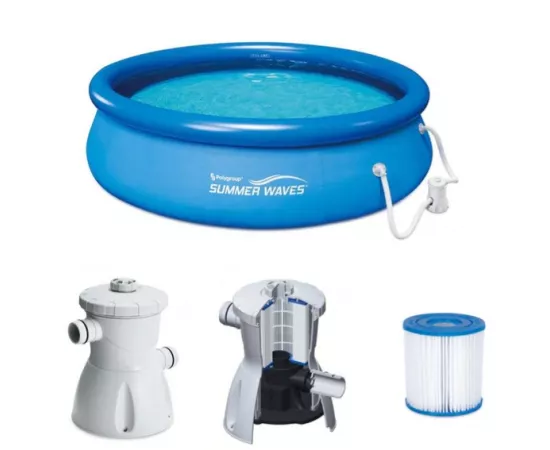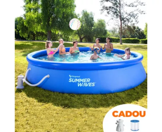 Piscina Gonflabila Summer Waves cu inel gonflabil și pompă de filtrare inclusă este concepută pentru o instalare rapidă în numai 10 minute! Te poți bucura de distracție imediată împreună cu familia ta în dimesiunile generoase ale piscinei: