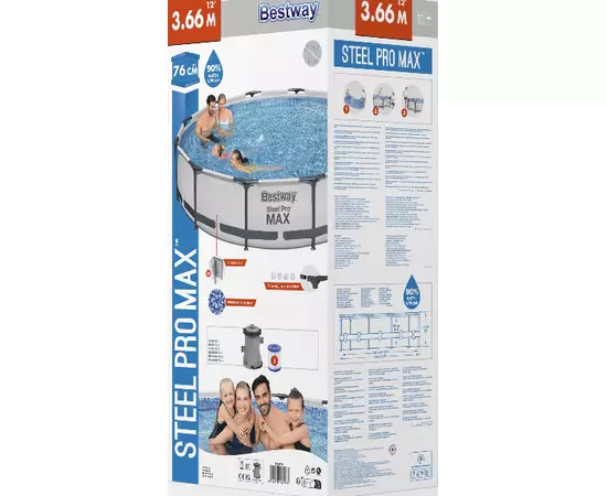 Piscina Bestway Steel Pro MAX, pompa filtrare, 3.66m x 76 cm