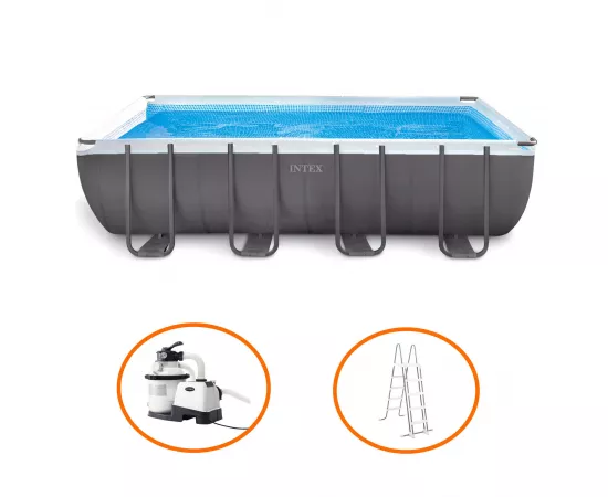 Setul piscina supraterana demonabila cu cadru metalic INTEX ULTRA XTR RECTANGULAR FRAME POOL include: