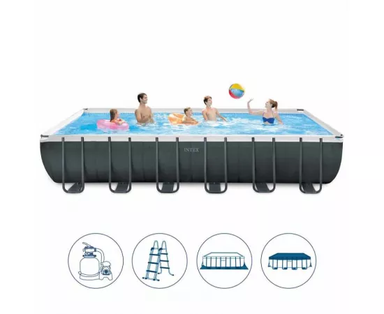 Piscina Intex este foarte usor de pus in functiune, asamblarea si umplerea cu apa a piscinei se poate face in maxim 60 de minute. Piscina este fabricata din material de inalta calitate, cu utilizarea tehnologiei ULTRA FRAME, care ofera o rezistenta tripla a peretilor piscinei.