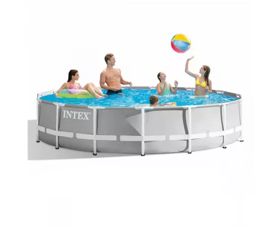 Set piscina cadru metalic supraterana demontabila INTEX PRISM FRAME cu cadru metalic si sistem de filtrare si accesorii incluse.