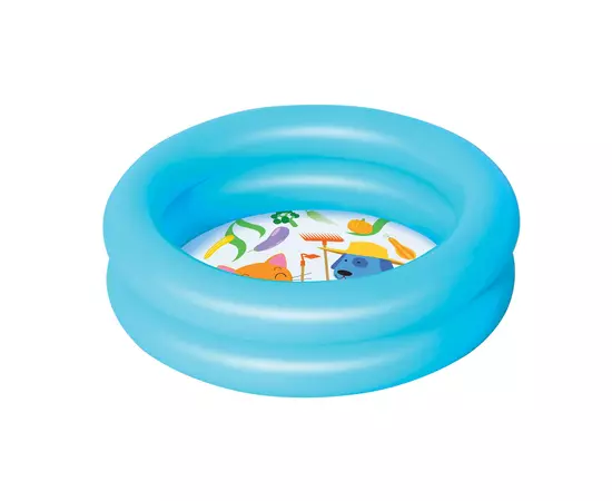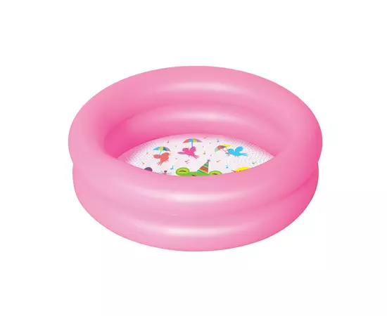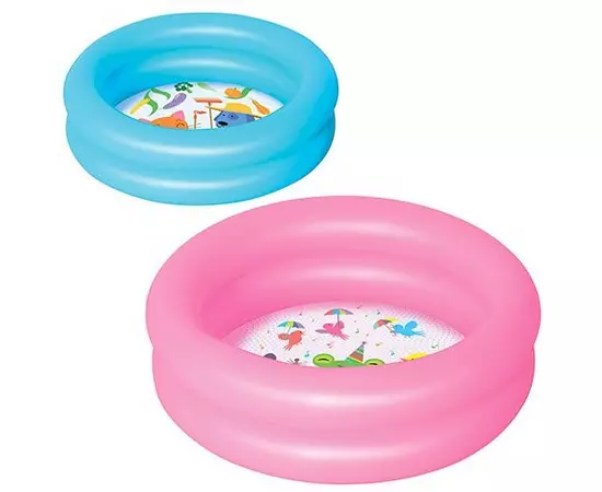 Piscina pentru copii Bestway este confectionata din vinil durabil, compusa din 2 inele gonflabile. Diametrul piscinei este 61 cm, iar inaltimea este de 15 cm si are capacitatea de umplere (aprox. 80%) de 21 litri.