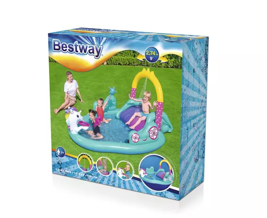 Piscina gonflabila centru de joaca copii 274 x 195 x 137 cm Bestway Unicorn