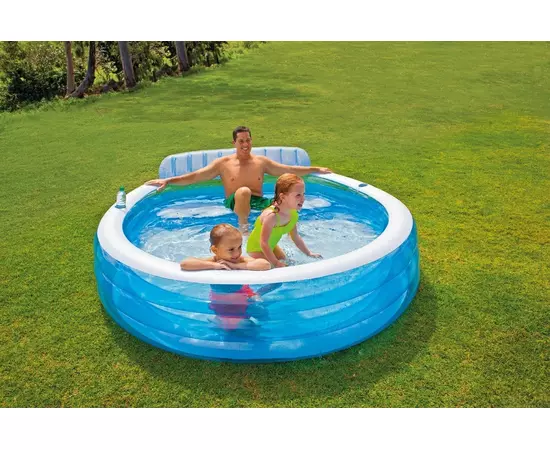 Conceputa pentru un grad de confort ridicat, piscina Swim Center 57190NP are peretii fabricati din vinil si zona gonflabila de relaxare in interior cu sezut si spatar. Va veti putea destinde linistiti alaturi de oameni dragi si bautura racoritoare preferata pentru ca este prevazuta cu 2 suporturi pentru pahare.