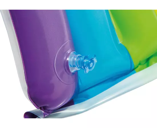 Este confectionata din vinil rezistent, ce ii asigura o durabilitate mare si un confort sporit. De asemenea va reprezenta un punct de atractie pentru copii datorita designului deosebit. Dimensiunile piscinei sunt 102 x 89 cm. Cantitatea de apa necesara umplerii (70%) este de 82 l.
