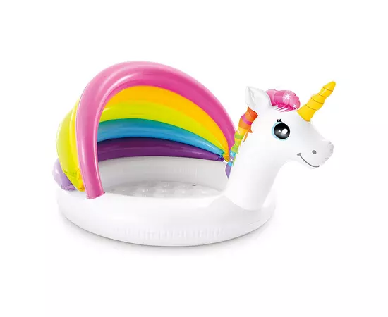 Piscina gonflabila, pentru copii, Intex Unicorn, cu protectie solara, 127 x 102 x 69 cm