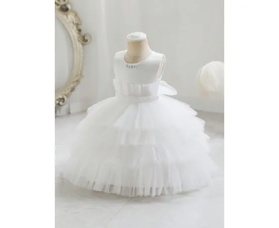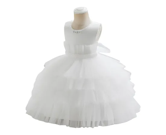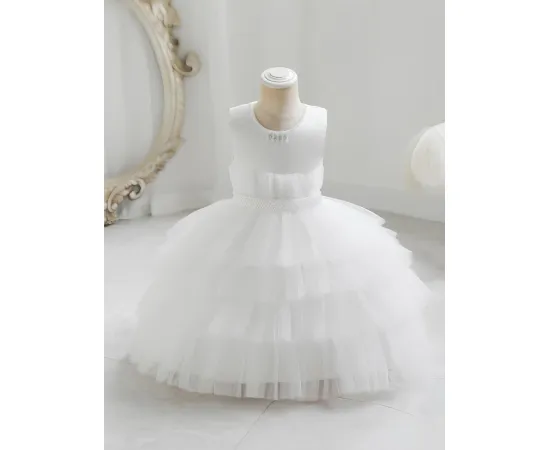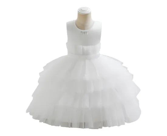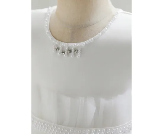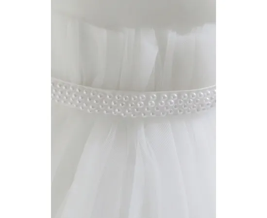 Această rochie delicată este alegerea perfectă pentru fetițele care vor să strălucească într-un mod subtil și rafinat. Cu fustă vaporoasă din tul fin și perle aplicate discret, rochia creează un efect diafan, ideal pentru ocazii deosebite sau ședințe foto pline de farmec.
