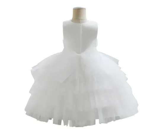 Rochie albă cu fustă din tul stratificat, ușor și aerat