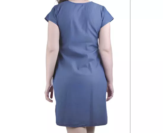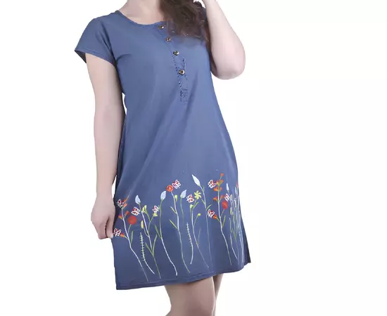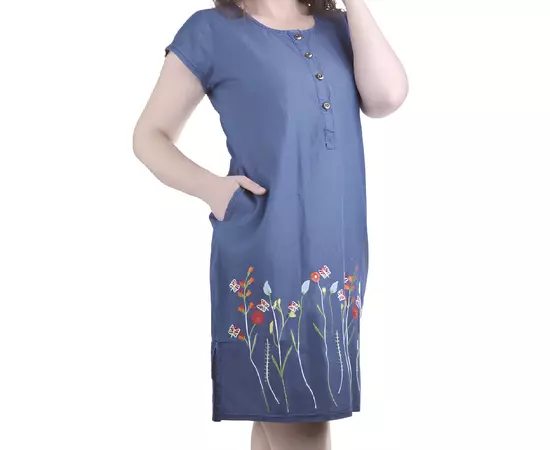 Rochie denim albastra cu motiv floral multicolor - RTM35