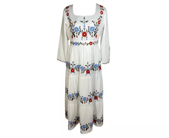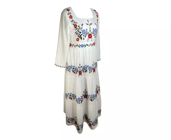 Rochie traditionala alba cu motiv floral multicolor - RTM39