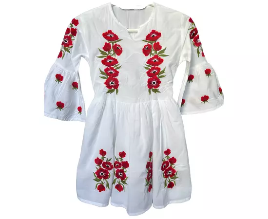 Rochie Traditionala Alba pentru Fetite cu Motiv Floral Rosu- RTF11