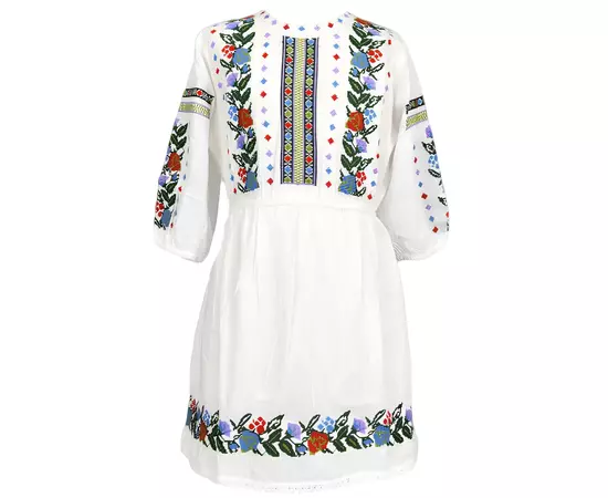 Compleu traditional alb pentru fetite cu motiv floral multicolor - RTF15