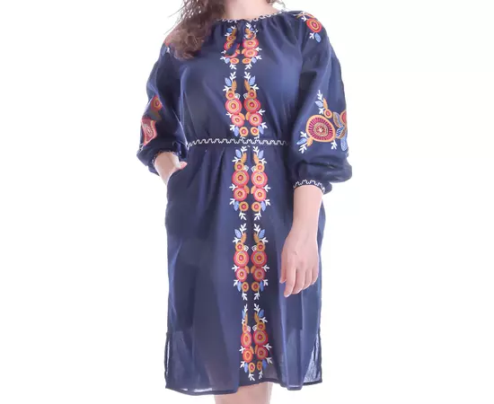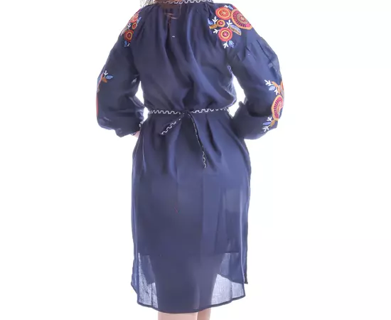 Rochie Traditionala Midi Albastra cu Motiv Geometric Multicolor - RTM24
