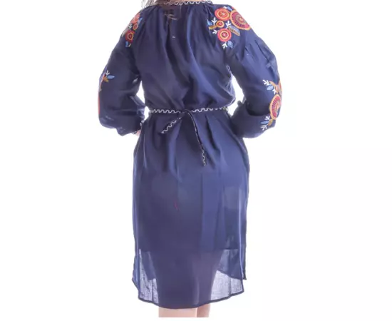 Rochie Traditionala Midi Albastra cu Motiv Geometric Multicolor - RTM24
