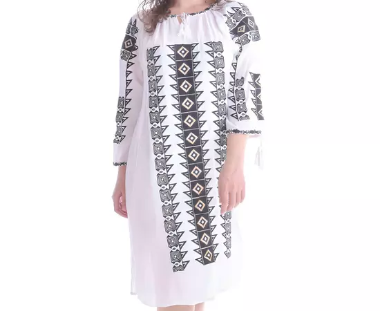 Rochie Traditionala Dreapta Alba cu Motiv Geometric Negru - RTM23