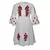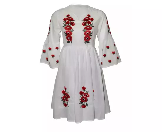 Rochie traditionala midi alba din bumbac cu maneca 3/4 si motiv traditional rosu