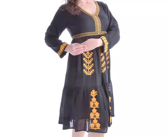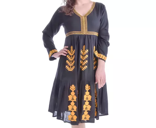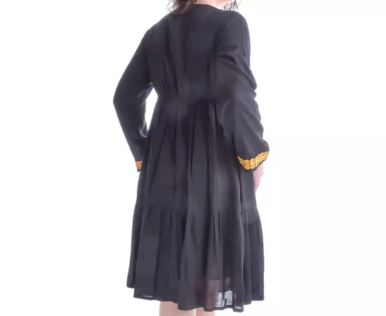 Rochie Traditionala Evazata Neagra cu Motiv Floral Galben - RTM21