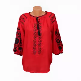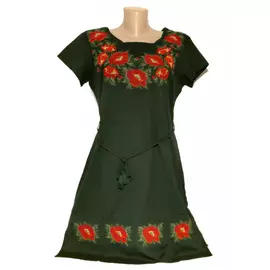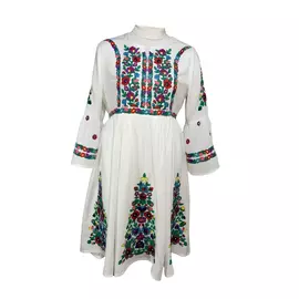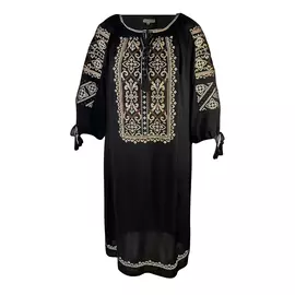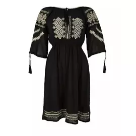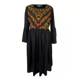 Rochie Traditionala Evazata Neagra cu Motiv Floral Galben - RTM21