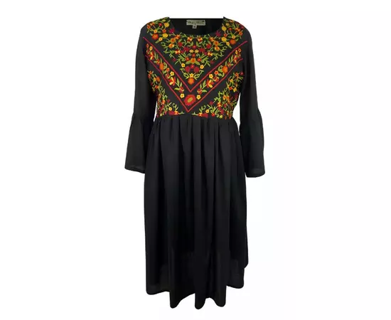 Rochie Traditionala Evazata Neagra cu Motiv Floral Multicolor - RTM15