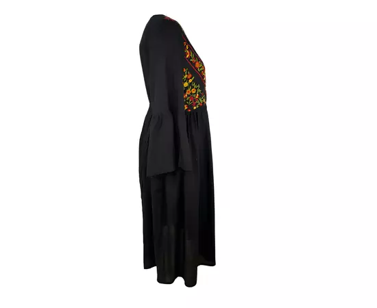 Rochie Traditionala Evazata Neagra cu Motiv Floral Multicolor - RTM15