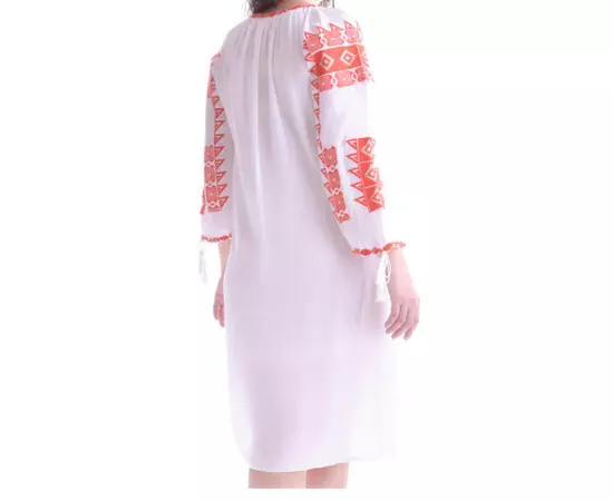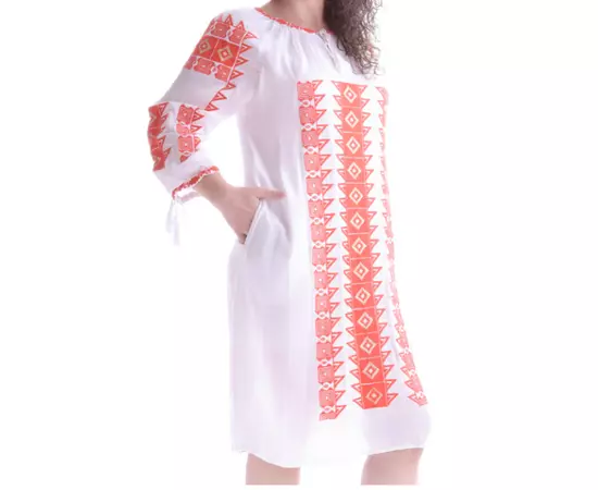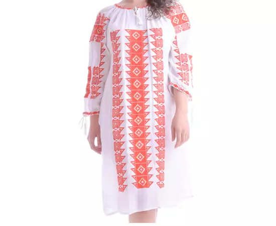 Rochie Traditionala Dreapta Alba cu Motiv Geometric Rosu - RTM19