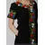 Rochie Traditionala Midi Neagra cu Motiv Floral Multicolor - RTM11