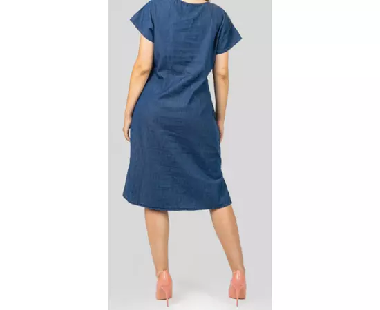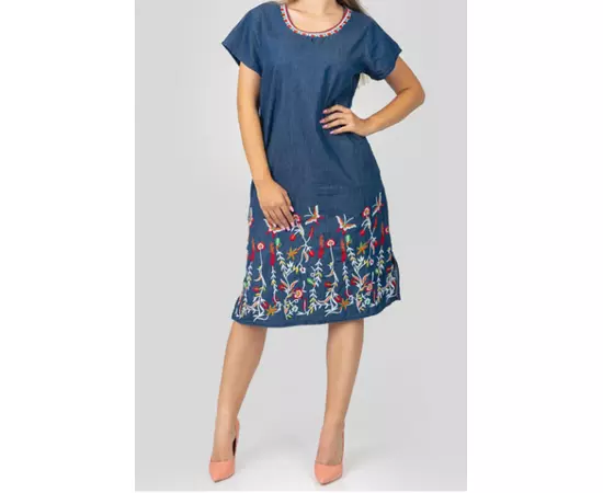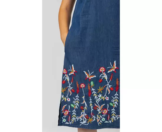 Rochie albastra din bumbac cu maneca scurta si motiv floral multicolor