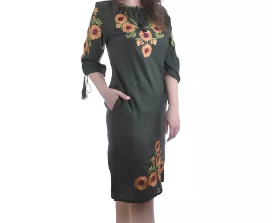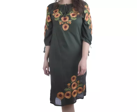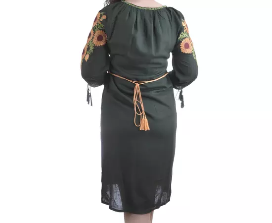 Rochie Traditionala Midi Verde cu Motiv Floral Portocaliu - RTM30